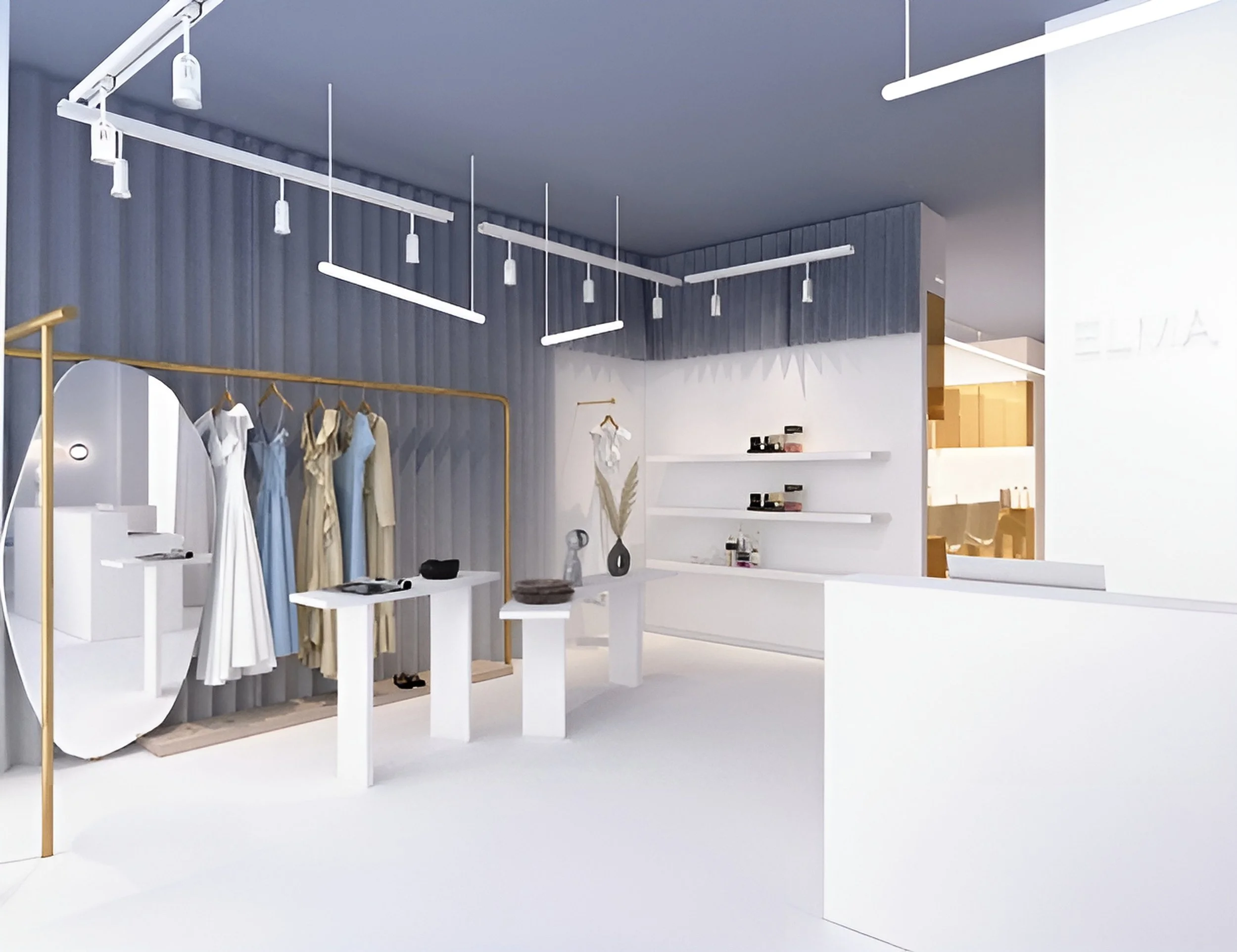 The design for this space embodies a dual-function beauty salon and concept store, reflecting a unique blend of practicality and aesthetic appeal. The central challenge of this project was to create a flexible space that could seamlessly transition between an open-plan area and a divided environment for exclusive events.